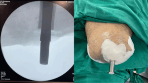De acordo com o ortopedista, o grande diferencial  nesta cirurgia é o uso da endoprótese de titânio, um componente metálico implantado no osso do paciente, proporcionando um encaixe perfeito da prótese.